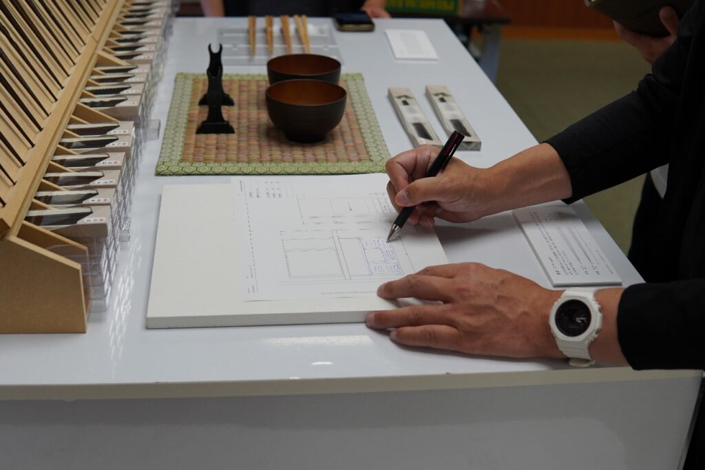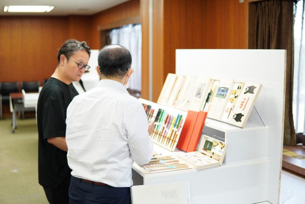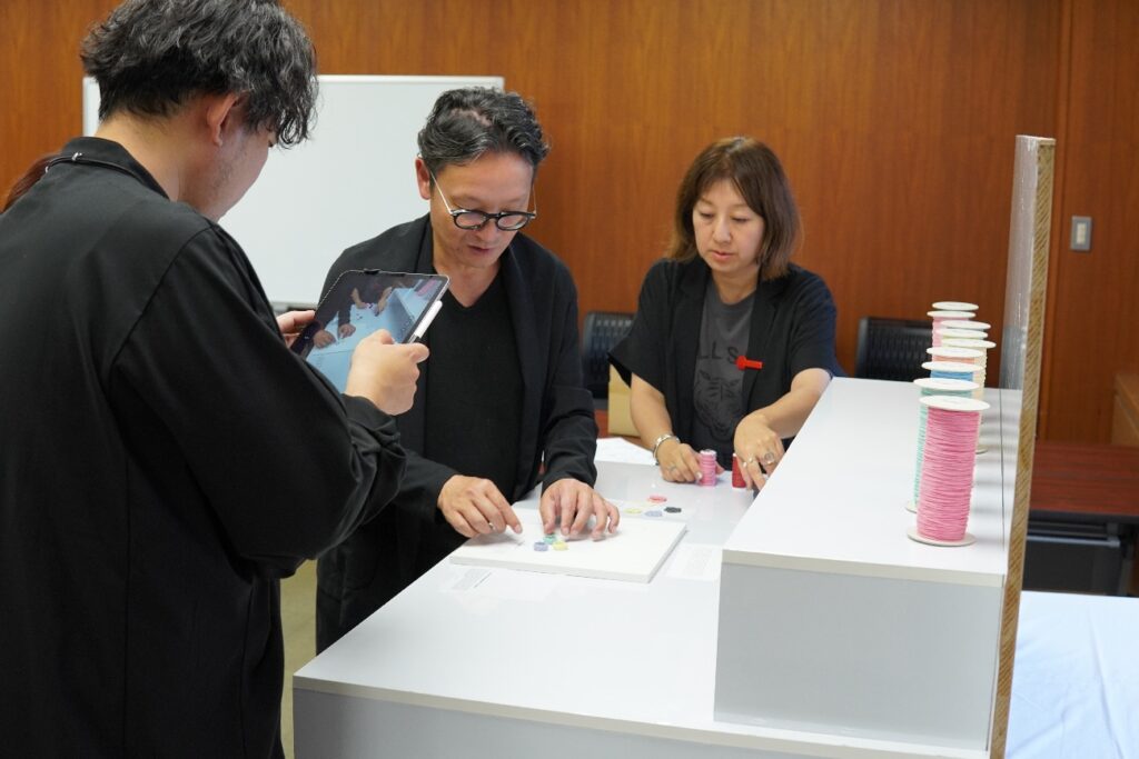 - 出展社ごとに時間をとり「ディスプレイ検討会」も事前に福井で実施しました。実際の展示台に近い模擬展示台を使って展示会当日のディスプレイを行っていただき、悩んでいる点や迷っている点などを共有しながら、SUPER PENGUIN社のアドバイスを受けて展示の方向性をかためていただきました。事前にこういった機会がある事で初出展の方でもスムーズに出展の準備を進めることができていました。