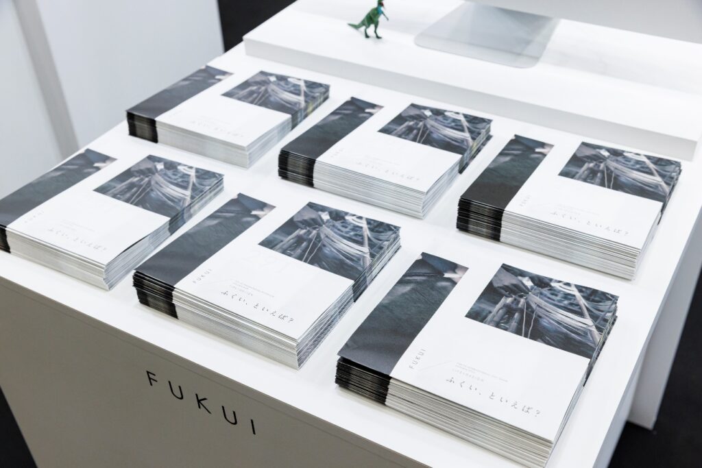 - 福井県ブース紹介のリーフレットのデザインもSUPER PENGUIN社にお願いしています。掲載する写真やキャッチコピー、紹介文をベースに展示台の壁面グラフィックも検討していきました。
