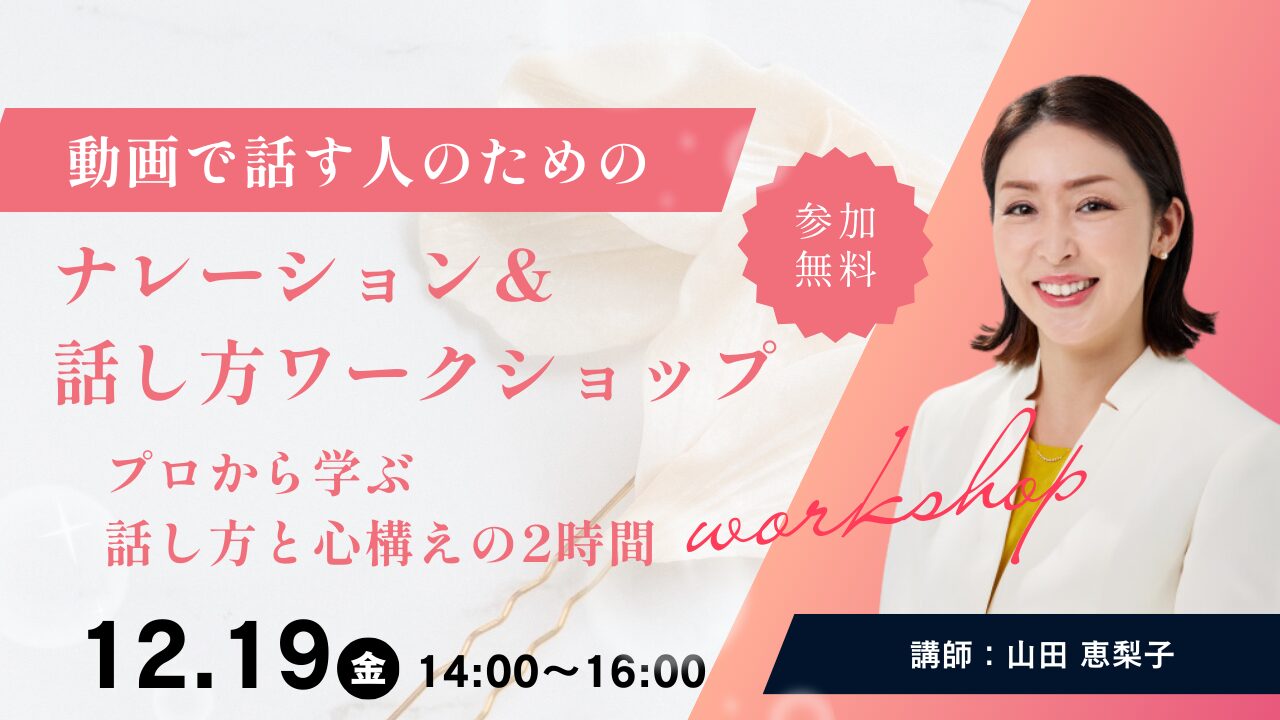 【参加無料】動画で話す人のための ナレーション&トーク実践ワークショップ