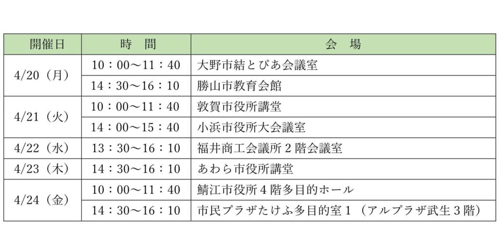 今回、さらなる利用促進に向け、当センターの各事業を知っていただくとともに、担当者間相互の連携を深めることを目的に、県内各地で令和8年度の事業説明ならびに担当者交流会を開催いたします。